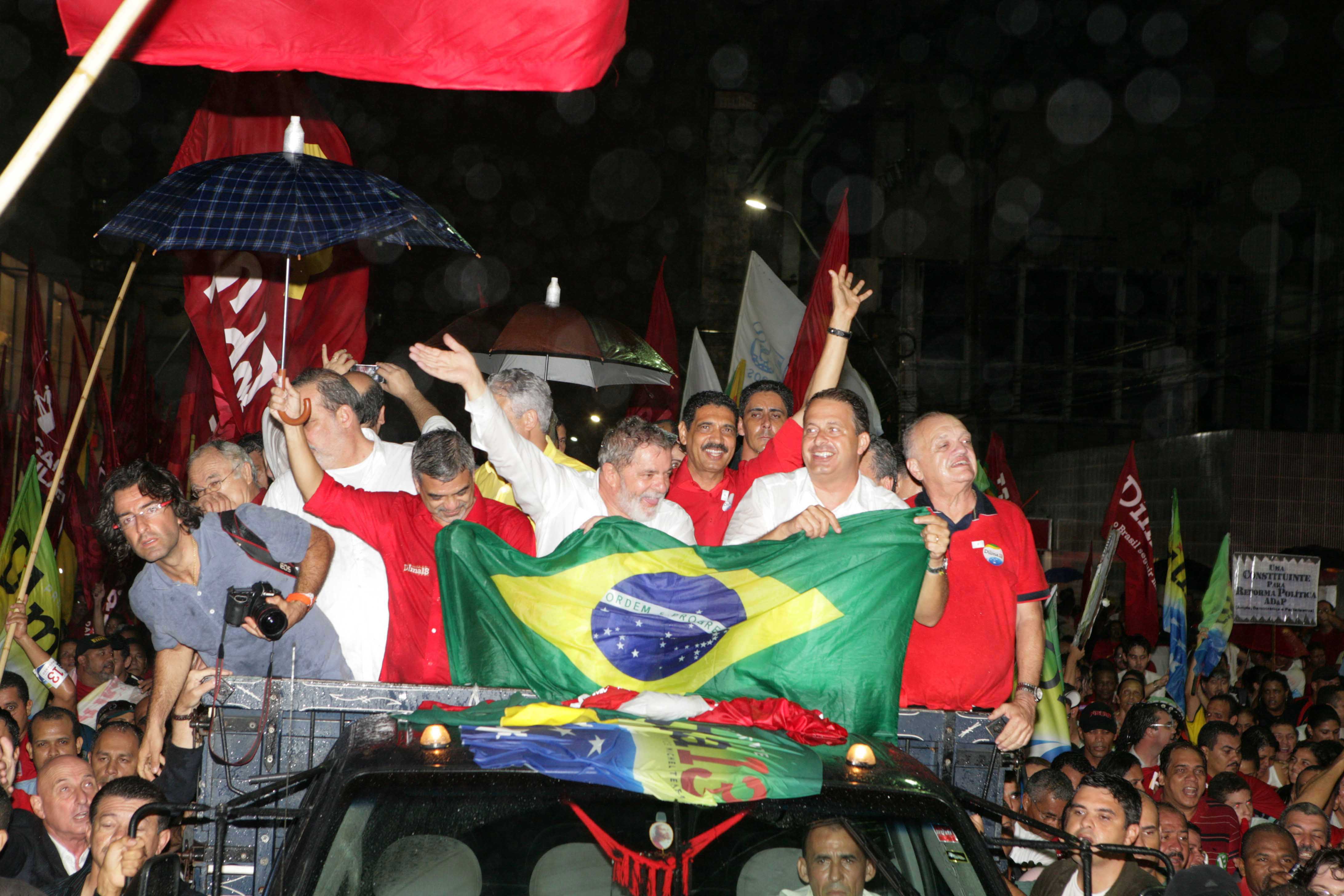 A caminhada começou as 17h15, quando o presidente chegou à praça Oswaldo Cruz. Em coro a multidão começou a gritar: “Lula, guerreiro do povo brasileiro!”. Lula subiu em uma caminhonete junto com o governador Eduardo Campos (PSB), os senadores eleitos Armando Monteiro (PTB) e Humberto Costa (PT), o coordenador da Campanha de Dilma em Pernambuco, João Paulo (PT), o prefeito em exercício do Recife, Milton Coelho (PSB), o presidente da Assembléia Legislativa, Guilherme Uchoa (PDT), e o líder do PT na Câmara, Fernando Ferro (PT).