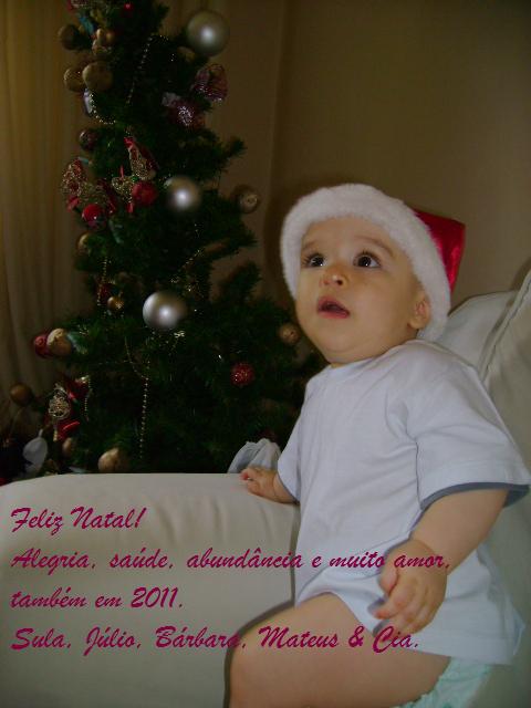 Difícil escapar ao clima, entretanto. Não pude resistir à foto do meu neto caçula, Mateus, de nove meses. Produzi-a e meu companheiro clicou, dentre outras, a pedido da mãe. Também nós transformamos uma delas em mensagem de Natal, acima, com nossos votos de paz, harmonia e igualdade entre os povos e indivíduos. Carrega todos os nossos bons fluídos, através da nossa mais tenra criança.