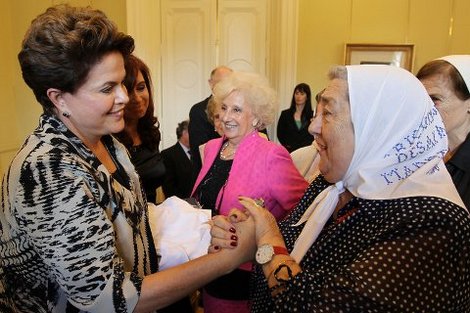 Ao lado da presidenta Cristina Kirchner, na Casa Rosada, Dilma se encontrou com avós-mães da praça de Maio, que há décadas lutam pela verdade em relação ao desaparecimento e morte de seus filhos, e para reaver os netos perdidos para a ditadura. A ex-guerrilheira Dilma pediu o encontro. Como que a reafirmar sua posição expressa e reiterada de que “direitos humanos são inegociáveis”.