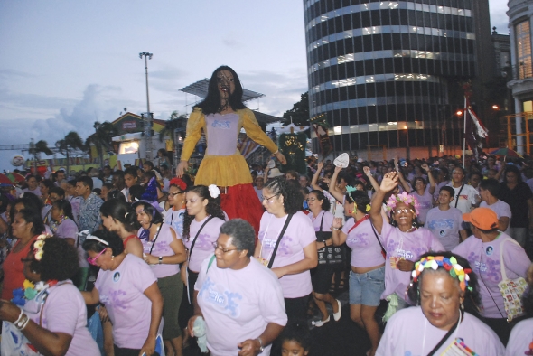 Para celebrar os 10 anos, o bloco ganha novo estandarte. Na cor lilás, que identifica o movimento feminista internacional, é forrado em veludo, com adornos de galões dourados, rabo de gato prata, cetim, e enfeites de tecidos estampados. Obra coletiva de costureiras negras de seis RPA’S – Regiões Político-Administrativas do Recife, uma vez que este é o Ano Internacional das/os Afrodescendentes, definido pela ONU.