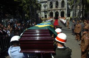 A presidenta da República, Dilma Roussef, o ex-presidente Lula e a ex-primeira-dama, Marisa Letícia, compareceram ao adeus ao ex-vice-presidente, que acabou levado pela doença. Deixaram o Palácio da Liberdade pouco antes da saída do funeral.