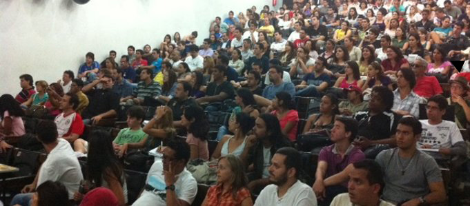 Metade da população que lotou o Auditório Ribeira do monumento de concreto na divisa do Recife com Olinda – à falta de cadeiras, teve gente sentada nas escadas – era de blogueiros, segundo se aferiu in loco (contei no sítio do evento, dos 685 inscritos, há 138 blogs catalogados). A maioria, gente jovem. Diferentemente do que se constatou no 1º Encontro Nacional, em agosto de 2010, em São Paulo, onde a média de idade ficou na faixa dos 40-45 anos, aqui não passou dos 30. Mesmo com alguma presença de gente mais ou menos provecta, como esta reles blogueira, que já avançou dos 50.