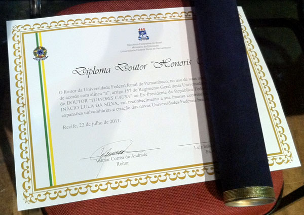 É seu quinto título do gênero: o primeiro foi concedido pela Universidade Federal de Viçosa, Minas Gerais, e o segundo pela Universidade de Coimbra, em Portugal. Clique para ler matéria no Instituto Cidadania.