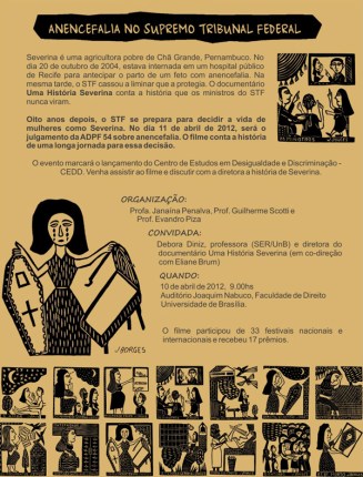 A história desta mulher, desta família, é igual a muitas histórias Brasil afora. Virou filme, com direção e roteiro de Débora Diniz e Eliane Brum: Uma História Severina, e que será apresentado na manhã desta terça, 10, na UnB, conforme imagem do convite que abre esta postagem. Posto o documentário, que está no Youtube, através do Vi o Mundo, e ao qual cheguei via Agência Patrícia Galvão e Rede Mulher e Mídia.