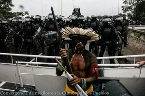 Ao final da Marcha dos Povos, que passou tranquilamente, um grupo de jovens, dos movimentos Ocuppy do Brasil e paízes vizinhos, Indignados e Somos 99% ocuparam o final da Av. Rio Branco, e foram retirados pela polícia. Eis o vídeo, capturado no Youtube a partir da Ciranda.Net:
