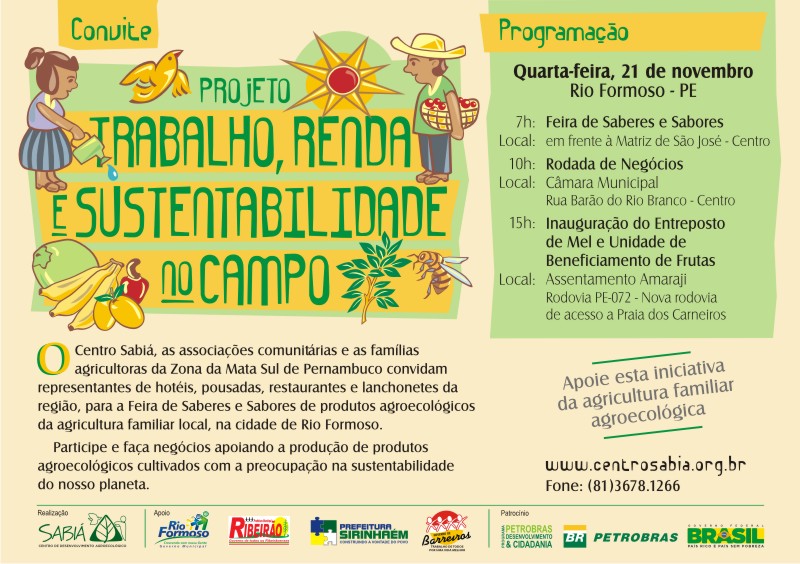 O evento é realizado pelo Centro Sabiá, famílias agricultoras e associações comunitárias, com o patrocínio da Petrobrás, através do Programa de Desenvolvimento & Cidadania. É parte do projeto Trabalho, Renda e Sustentabilidade no Campo, desenvolvido pela ONG com sede no Recife. Envolve 600 famílias que já praticam agricultura agroecológica e que, a partir do projeto, podem beneficiar sua produção e comercializar seus produtos, gerando renda.