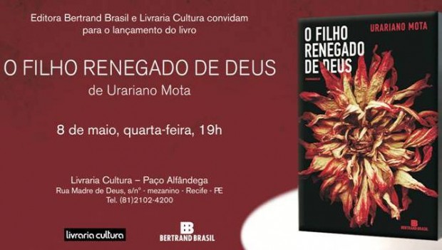 É nesta quarta-feira o esperado lançamento do mais novo livro de Urariano Mota, jornalista e escritor: O Filho Renegado de Deus, pela Bertrand Brasil. A noite de autógrafos acontece na Livraria Cultura, no Paço Alfandega, no Recife Velho, a partir das 19:00 hs. Prepare-se para fortes emoções, pois meu amigo pernambucano escreve com o coração e com as vísceras, sem temer a realidade que embrenha a sua ficção.