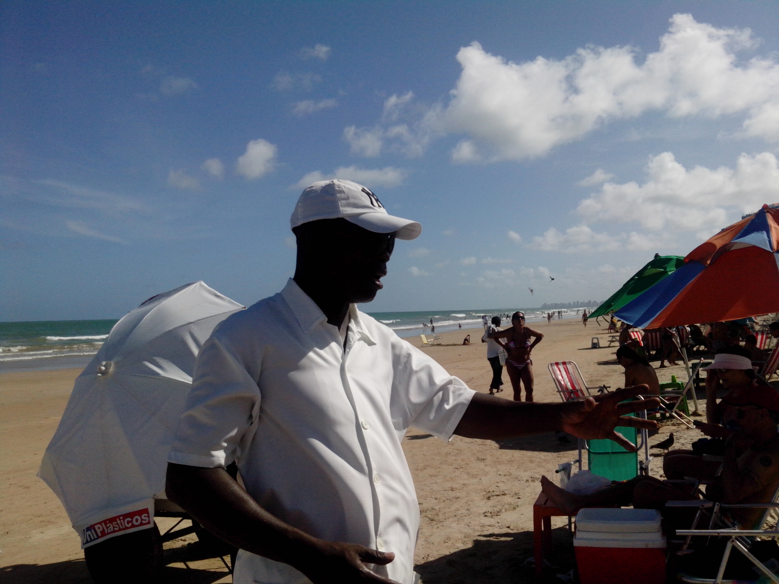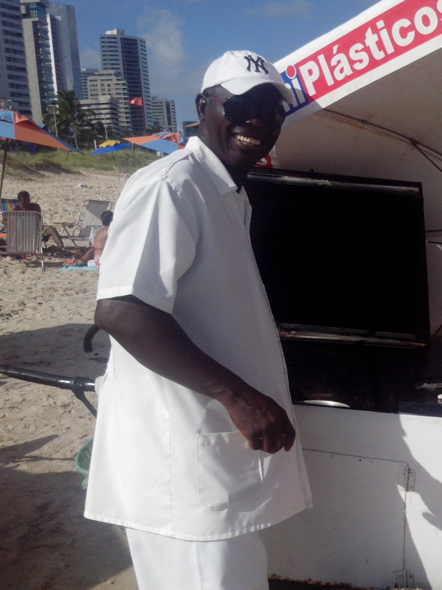 De quinta a domingo, no verão – que nestas plagas começa em setembro – e nos finais de semana de inverno que Iansã concede guardar o choro, ou a ira, para horas precisas – lá está ele, ébano sob imaculado uniforme branco, que inclui boné e um indefectível sorriso de arcada inteira, perfeita.