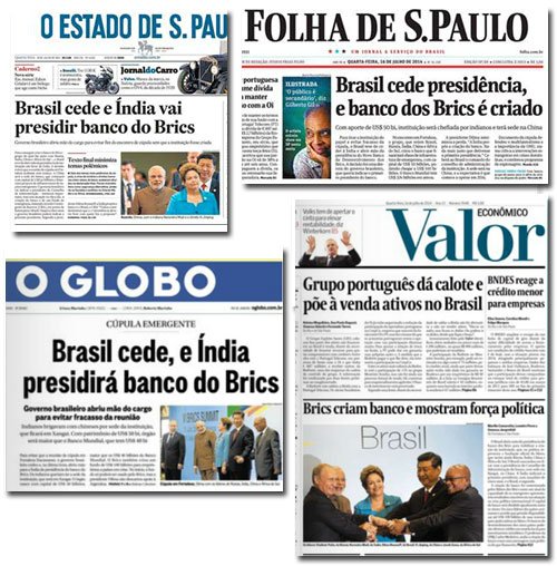 Portanto, o desdém da mídia, não só desconsidera a importância histórica da cúpula do Brics, em Fortaleza, dia 15, seguida pela reunião Brics/Unasul, em Brasília, na quarta, 16. Pode ser explicado pelas implicações no tabuleiro político mundial, regional, local.