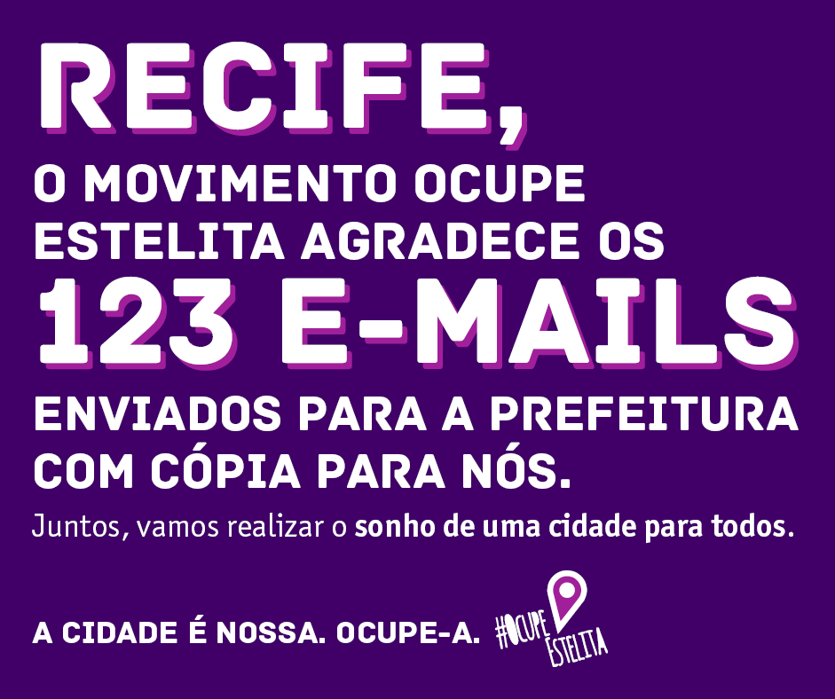 Prova de que o Estelita, na definição do coletivo, “é muito mais do que 10 hectares na Ilha de Antônio Vaz, onde se situa o Cais. É um símbolo de luta. Luta por uma cidade mais democrática, por maior participação popular na esfera pública, por melhor qualidade de vida em nossos centros urbanos”.