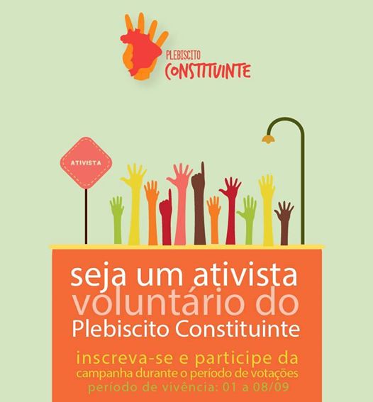 Nos postos de votação, você responde se é a favor da  Constituinte Exclusiva para Mudar o Sistema Político do Brasil, e adere ao abaixo-assinado para o projeto de lei. São necessárias 1,5 milhão de assinaturas para que ele seja encaminhado ao Congresso Nacional.