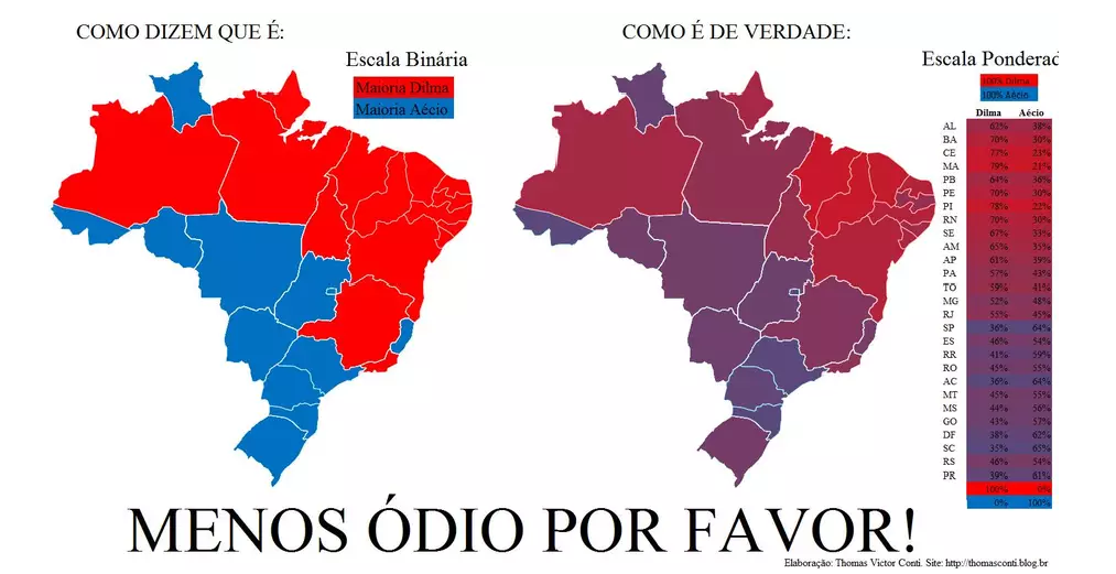 Postagem revista e atualizada às 14:42, hora do Recife: inclusão dos mapas do Brasil com votação comparativa em todos os estados, e acesso à reportagem com o autor no Terra Magazine, o historiador econômico Thomas Conti.
