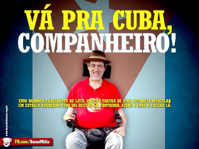 Nosso amigo e blogueiro Enio Barroso precisa tratar de uma distrofia muscular em estágio avançado. Em Cuba há um tratamento que controla o avanço da doença e ameniza os sintomas já existentes. O tratamento é feito em duas etapas, que ao todo somam 35 dias. Durante todo o tratamento é necessário que ele tenha um acompanhante.