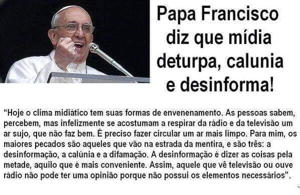 Esta não é a primeira vez que o papa Francisco crítica a mídia monopolista. Em março de 2014, ele já havia apontados alguns “pecados” da imprensa. Numa audiência para as emissoras católicas da rede Corallo, o pontífice afirmou: “Hoje o clima midiático tem suas formas de envenenamento. As pessoas sabem, percebem, mas infelizmente se acostumam a respirar da rádio e da televisão um ar sujo, que não faz bem. É preciso fazer circular um ar mais limpo. Para mim, os maiores pecados são aqueles que vão na estrada da mentira, e são três: a desinformação, a calúnia e a difamação”.