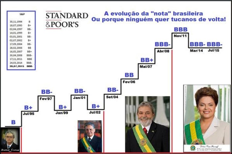 Entretanto, o prato preferencial da mídia nativa, desde ontem, é o tal rebaixamento do Brasil pela empresa de classificação de risco a S&P. Sopa requentada.