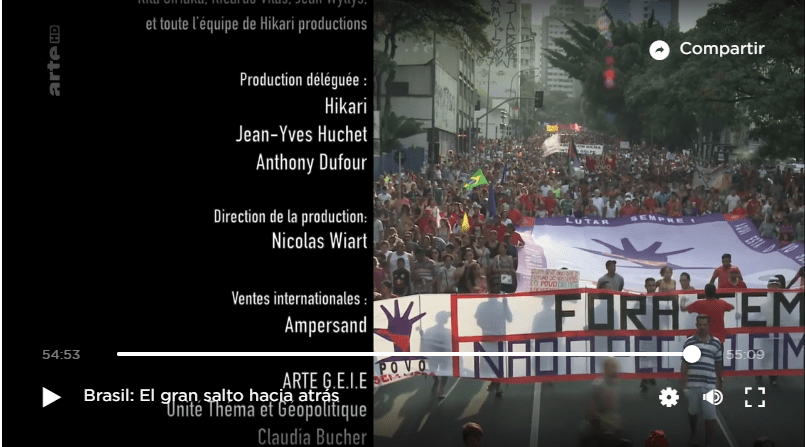 Desde a última quarta-feira, está disponível no sítio Arte.TV G tem (www.arte.tv) o documentário ‘Brasil, o grande salto para trás’, legendado em espanhol. Você não pode deixar de ver.