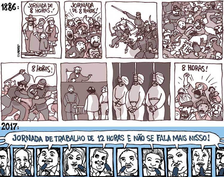 Para ele, o sinônimo de degola de direitos é “modernização das leis trabalhistas” e isso faz do 1º de maio deste ano um “momento histórico”. Para ele, as “reformas” vão gerar empregos para jovens, dar direitos ao trabalhador temporário e harmonizar as relações entre o trabalho e o capital.