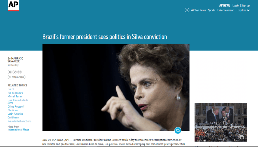 Ex-presidenta do Brasil vê jogada política na condenação de Lula