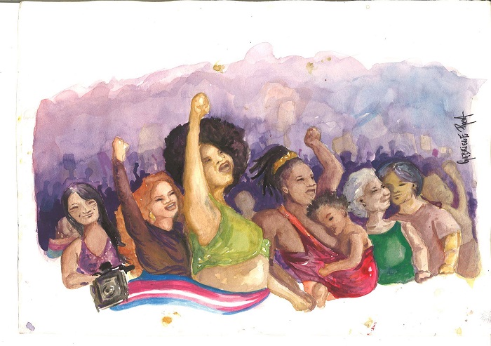 Créditos da Imagem: Arte de Gabriele Rosa de Novaes via página Caminhada de Mulheres Lésbicas e Bissexuais de São Paulo.