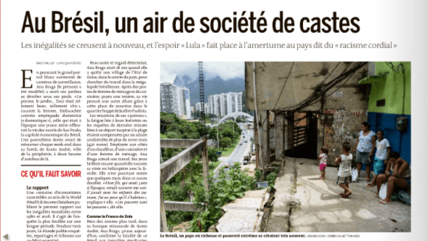 É o que mostra outra reportagem, desta vez, no Le Monde, um dos mais conceituados diários europeus. Publicada no sábado, 16, se baseia em estudo dirigido pelo economista francês Thomas Piketty. Seu aluno, Marc Morgan, que levantou os dados de patrimônio e renda no Brasil, compara a desigualdade social daqui à França do século XIX, que inspirou Os Miseráveis de Victor Hugo.