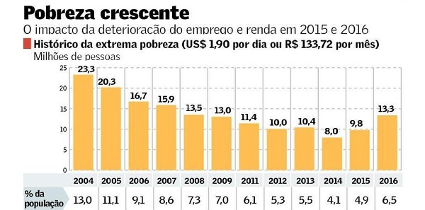 Dá para entender por que o Bolsa Família e as políticas de inclusão são absolutamente necessárias? Bastaram dois anos para se quebrar a tênue espinha dorsal da busca de um vislumbre de cidadania. Imagina o que dirão os dados de 2017 e 2018.