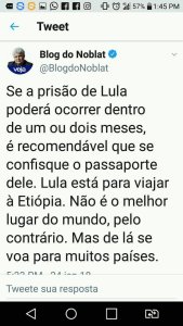 Imagina, se para o jornal dos Marinho Lula, desde o dia 24, “está mais perto da prisão do que retornar à Presidência da República”, agora ele sequer pode deixar o País. O cativeiro se corporifica com o cerceamento da liberdade de ir e vir.