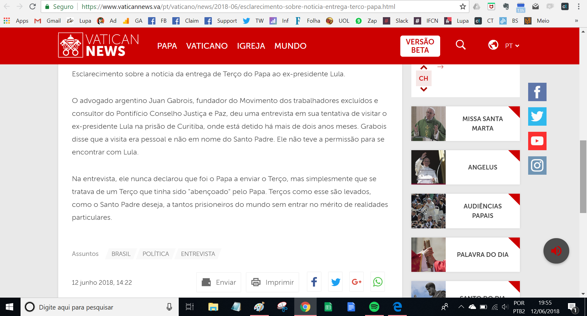 quarta-feira, 13 junho 2018