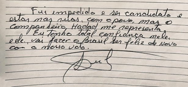 Significa que a transferência de votos de Lula para Haddad é fato irrecorrível. E a empatia do ex-presidente, encarcerado ao revés da lei numa cela da Polícia Federal em Curitiba, não pode ser bloqueada pelo arbítrio.