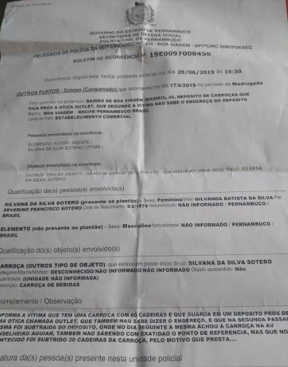 Silvana prestou queixa na Delegacia de Boa Viagem. Buscou imagens na farmácia próxima (fotos acima e no alto) e as entregou a polícia. Mas enquanto não se resolve o caso, precisa ganhar a vida para alimentar suas crias, pagar seus fornecedores e ajudantes.