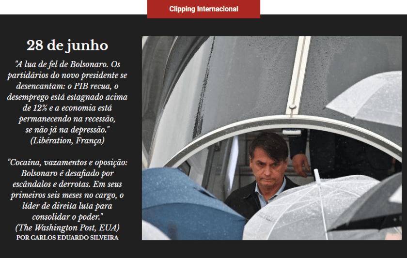 Daí que recomendo, se quer se informar sem o viés nativo da mídia hegemônica, visitar o Clipping Internacional da agência Carta Maior, onde printei a imagem que abre esta postagem.