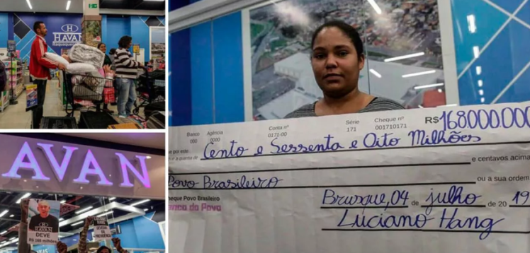 Ainda na quinta, o MTST levou 50 moradores de rua para comprar nas lojas Havan, em São Paulo. Pagaram com cheque simbólico no valor da sonegação do empresário bolsonarista: R$ 168 milhões de reais.