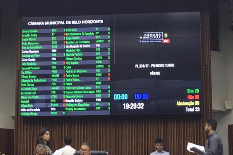 Quadro de votação na Câmara Municipal de Beagá – Foto: Lucas Henrique Gomes, via WhatsApp/OTempo