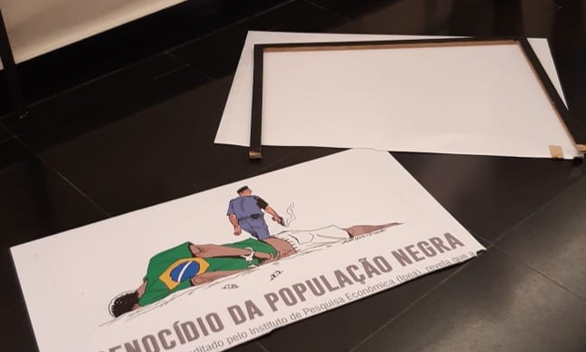 “Agressão de um policial militar, que por acaso também é um parlamentar, contra uma de minhas charges exposta no Congresso Nacional e que denuncia a violência policial, nos leva a seguinte reflexão. Se fazem isso contra um cartaz, imagine contra gente de carne, osso e pele negra!”