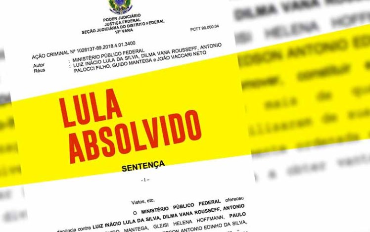 Defesa de Lula celebra absolvição sumária em acusasão infundada. O ex-presidente Lula e a ex-presidenta Dilma e os ex-ministros Mantega e Pallocci foram absolvidos, sumariamente, em processo que os acusava de “suposta organização criminosa em esquemas na Petrobras, no Banco Nacional de Desenvolvimento Econômico e Social (BNDES) e em outros setores da administração pública”. Na mídia venal, ficou conhecida como ‘Quadrilhão do PT‘, inspiração do famigerado power point do Dallangnol, chefe da Lava Jato, ora em decadência exatamente por seus excessos de ilicitude. A defesa de Lula celebrou a decisão que aponta a tentativa de criminalizar a atividade política.
