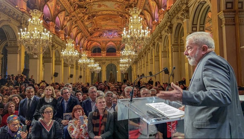 Lula leu o discurso em português. Aqui a versão em francês. Ele agradeceu a solidariedade da França com o Brasil e afirmou estar disposto como nunca a lutar pela democracia e contra a desigualdade.