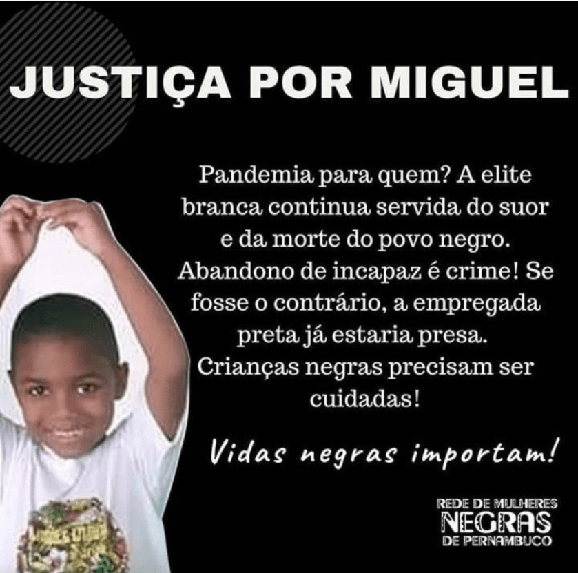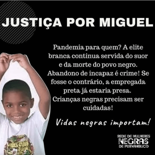 O nome disso é racismo estrutural, institucional. Miguel é mais uma vítima.