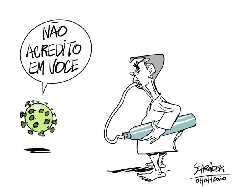 Não só as redes. Nos jornais, colunistas também se manifestam contra e a favor do corona. Hélio Schwartsman, da Folha de São Paulo, está sob ameaça de processo pela Lei de Segurança Nacional, por ter publicado um artigo sob o título “Por que torço para que Bolsonaro morra”.
