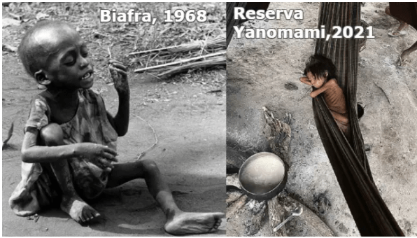 Inevitável lembrança ao ver a foto da capa de hoje da Folha de S. Paulo, ao “quase esqueleto” de uma criança yanomami em Roraima, ao que parece agora já recebendo assistência médica, depois de chegar a essa situação por malária, pneumonia, desnutrição e, sobretudo, falta de atenção de nossas autoridades públicas.