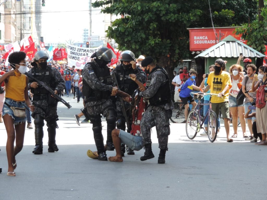 Manifestantes que exerciam seu direito ao protesto foram violentados, alguns foram presos, algemados, tiveram que pagar fiança e vão responder a processo.