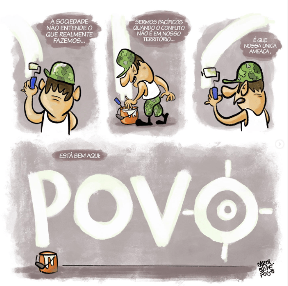 Muito bem traduzido pelo cartunista Aroeira na charge que posto mais abaixo, obrigada. E a Carol Cospe Fogo, que abre esta postagem, vai no cerne da questão ao desenhar os “inimigos” da milicada: o povo. Obrigada, também.