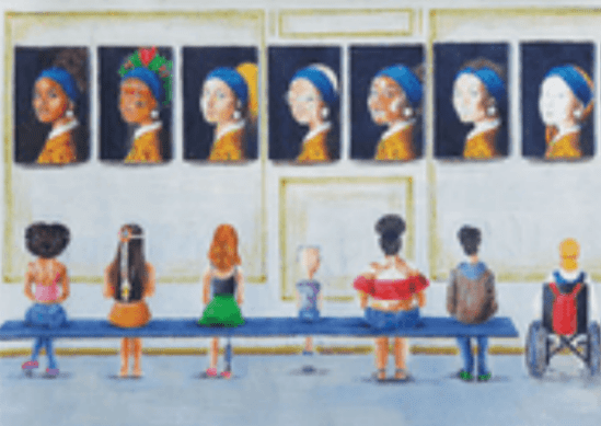 O anúncio oficial só saiu neste mês de dezembro, quando ela foi autorizada a espalhar a notícia e mostrar a arte feita exclusivamente para o concurso. A obra é inspirada na tela “Moça com brinco de pérolas”, do pintor Johannes Vermeer. No desenho da artista do IFPE Olinda, vemos oito mulheres sentadas em frente a oito diferentes telas. Cada mulher se identifica com uma versão diferente do famoso quadro de Vermeer.