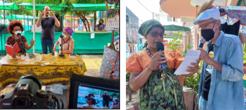 Em plena pandemia, a gente se deslocava para um mercado ou praça pública, terreiro ou casa de cultura popular no Recife, em Olinda, Paulista, Abreu e Lima, Camaragibe, Jaboatão Velho, Igarassu, Itapissuma, São Lourenço… para falar de cultura e direitos humanos; com tradução em Libras em tempo real pelo amigo Célio Lopes Cadena.