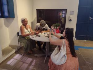 O lançamento do catálogo da exposição, no sábado, 21, foi mais uma coincidência feliz – favorecida pelas filhotas caçulas, Carol e Bárbara, que me possibilitaram esticar a breve estada. Minhas crias derradeiras não se cansam de comemorar meus 70, completados em 28 de dezembro, a data de fato.