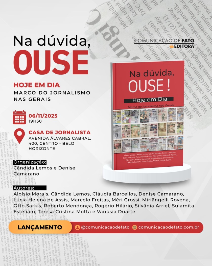 A obra vem a público na noite de 6 de novembro deste 2025, na Casa de Jornalista, à  Av Álvares Cabral, 400, centro da capital mineira. Vide imagem de abertura da postagem. Edição e produção executiva, Marcelo Freitas, Comunicação de  Fato Editora.